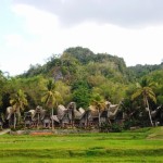 Tana Toraja není ale jen smrt a výjevy jako z hororu. Je to taky jedna z nejkrásnějších a nejmalebnějších krajin, které jsem kdy viděla. Zelené vulkanické hory, které jsou pokryté terasovitými rýžovými políčky, do nichž jsou zasazeny vesničky. Domy „tongkonan“ jsou velmi podivné, všechny mají tradičně tvar lodě, což má připomínat, že se Torajané do Sulawesi připluli právě na lodi. Krajinu obdivujeme jak ze sedačky motorky, tak na jednodenním treku.