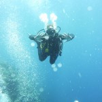 Pár dní krásného odpočinku a čeká nás další nekonečná cesta do Manada a odtud na další ostrov Bunaken. Zatímco Togeany jsou tichým klenotem, kam se propracuje jen několik skalních cestovatelů, Bunaken je vyhlášeným střediskem potápění. Na blízké letiště v Manadu dosedají denně letadla, které přiváží více a více potápění-chtivých nadšenců. Z ostrova samotného jsem zklamaná. Není tu ani pěkné, levné ubytování, ani pláže. Vstup do vody je zarostlý mangrovníky, a když už je někde kousek něčeho co by se dalo nazvat pláží, vody kolem jsou jasně označkované turisty v podobě plovoucích plastikových sáčků a plechovek. Co naplat, nejezdí se sem za sluněním, ale za potápěním, takže lezeme do neoprenu a hurá pod hladinu. I tady se nás ale drží smůla, vyfasovali jsme silný proud i nekompetentního místního divemastera. Zbytek skupiny ale zvládl ponor bez problémů i v proudu, jsou nadšeni, viděli žraloky i želvy. Nakonec si spravuji chuť obyčejným šnorchlováním. Když se propracuji přes pásmo plovoucích sáčků, pozoruji naprosto úžasné korály s hejny malých i poměrně velkých ryb a nakonec se mi podaří zaplavat si po boku želvy.