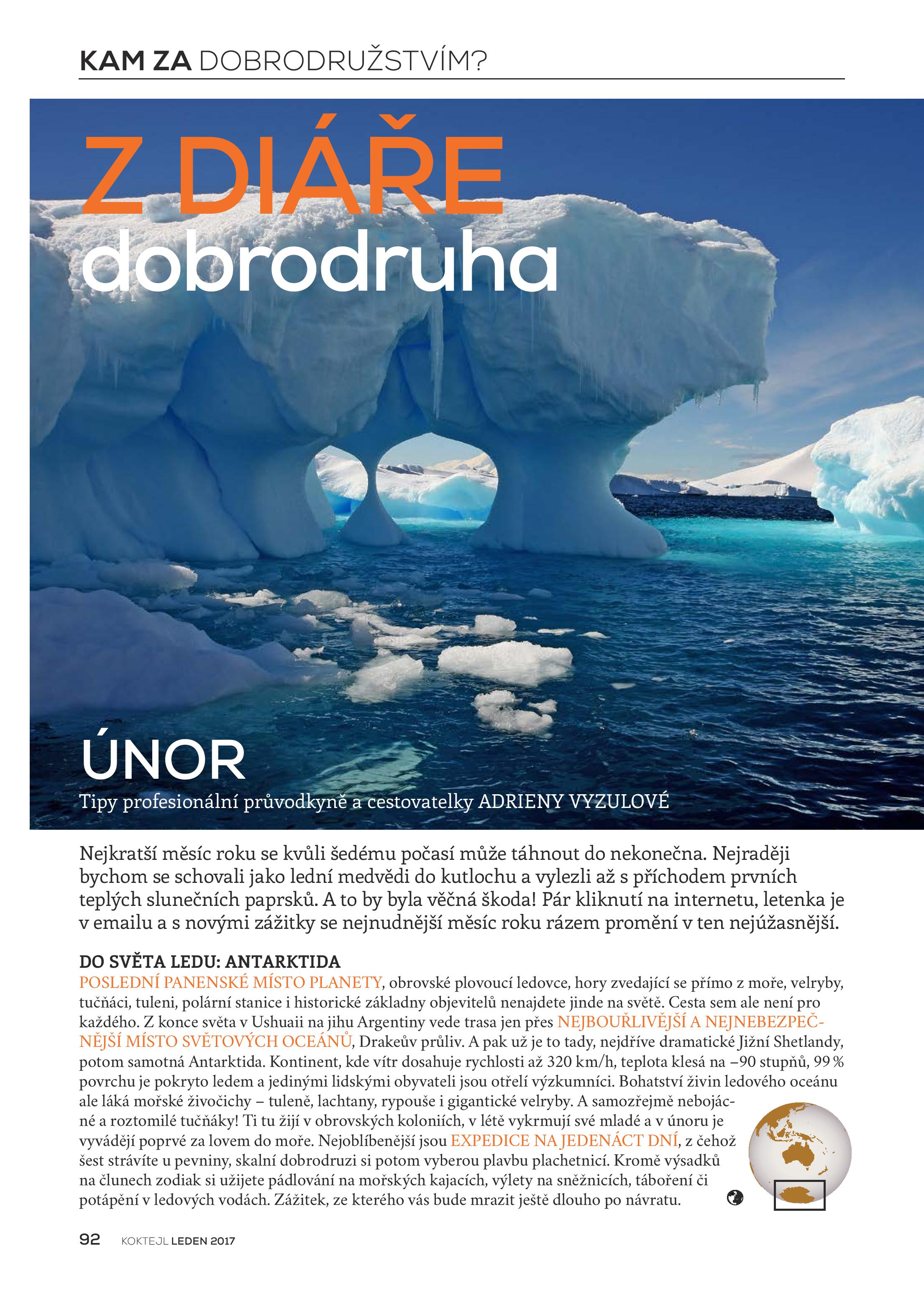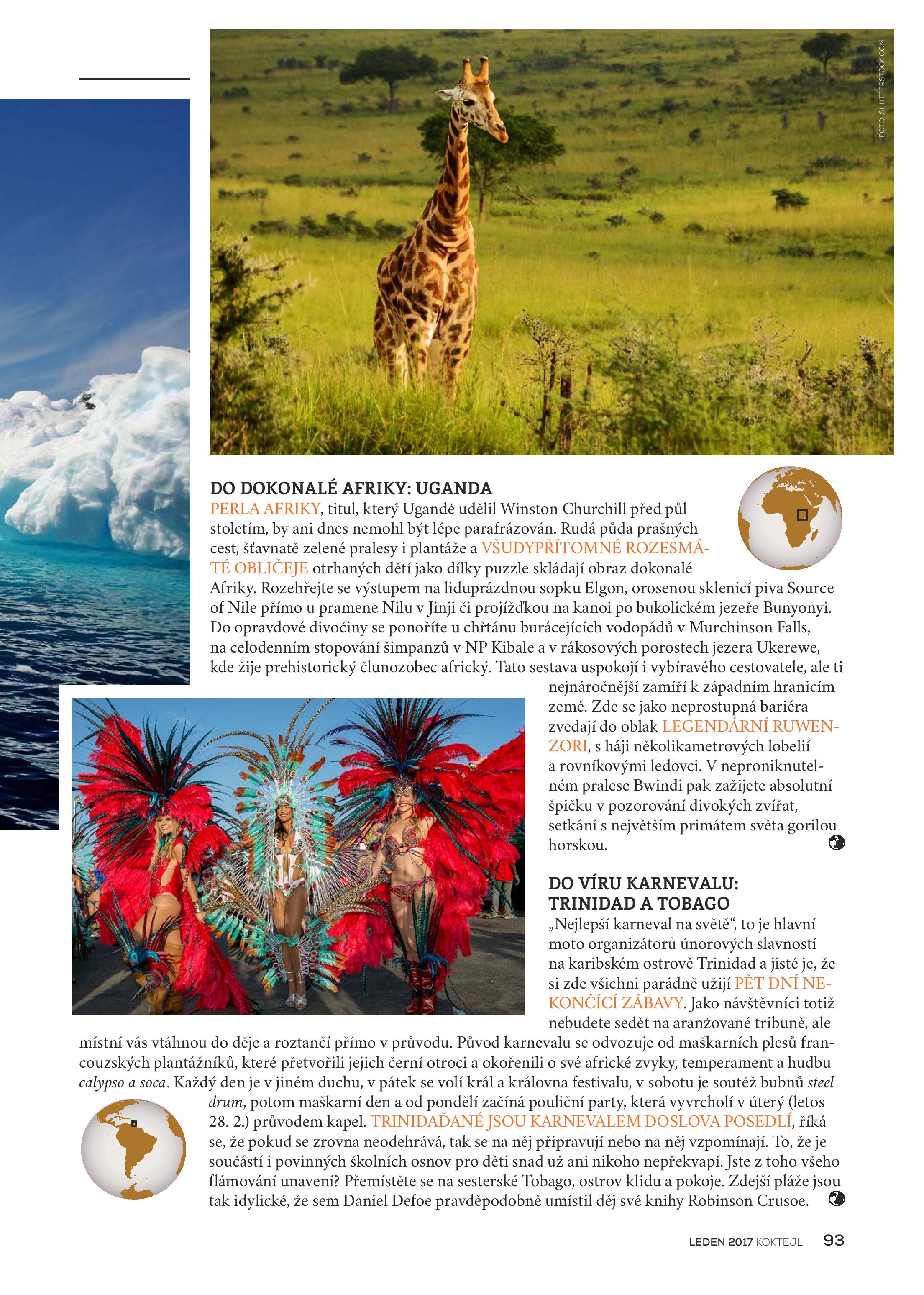 Nejkratší měsíc roku se kvůli šedému počasí může táhnout do nekonečna. Nejraději bychom se schovali jako lední medvědi do kutlochu a vylezli až s příchodem prvních teplých slunečních paprsků. A byla by to škoda. Pár kliknutí na internetu a můžete být na cestě třeba do světa ledu na Antarktidu, do dokonale africké Ugandy, do víru karnevalu na Trinidadu, za dávnými tradicemi  na Srí Lanku či do fantastické krajiny Nového Zélandu.